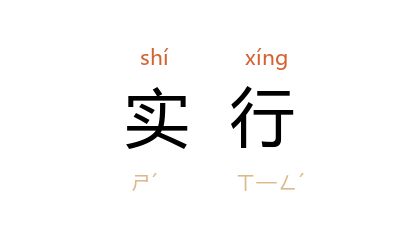 ⒉ 用行动来实现理论、纲领、政策、计划等。