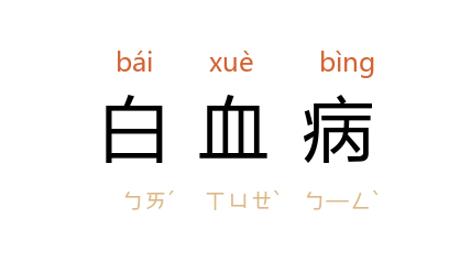 ⒈ 病名。血液中白血球发生病变的疾病。由于白血球异常增多,红血球减少,侵犯了正常骨髓、肝、脾、淋巴腺等,以致发生贫血、出血、发烧及衰竭等症状。病因尚不明确,可分为急性与慢性白血病二类。
