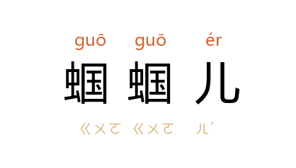 ⒈ 动物名。节肢动物门昆虫纲直翅目螽斯科。身体绿色或褐色,体型肥大,善于跳跃,吃植物的汁液和花。雄的能发出清脆的声音。北方人称为「蝈蝈儿」,南方人则称为「叫哥哥」。