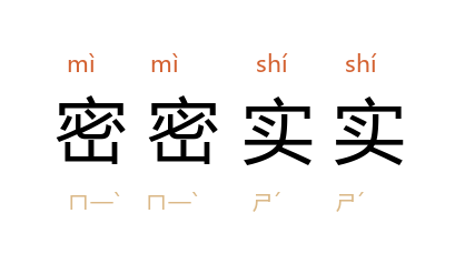 引杜鹏程 《在和平的日子里》第一章:“厚嘴唇下边密密实实的牙齿,仿佛能不费力地咬断钢筋。”《花城》1981年第1期:“几百棵婆娑多姿的荔枝树摩肩擦背地挤在一起,把一个小山包遮得密密实实,只留下几处可以望见蓝天白云的空隙。”