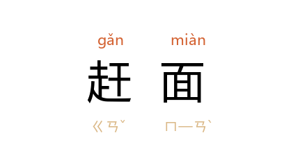 引《西游记》第七四回:“八戒 道:‘哥哥,若是这等赶麪打,或者二更时也都了了。’”清 悟痴生 《广天籁集》一:“赶麪赶的薄,切麪切得细。”《儿女英雄传》第二八回:“今日这两碗麵保不定还有个‘我家的媳妇儿会赶麵,赶到锅里团团转’的秘典在里头呢!”