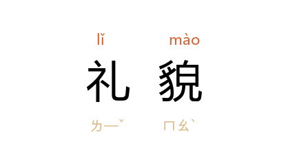 ⒈ 以庄肃和顺之仪容表示敬意;尊敬。今指以言语、行动所表现的恭敬谦虚。如:礼貌待客是商业服务人员起码的职业道德。