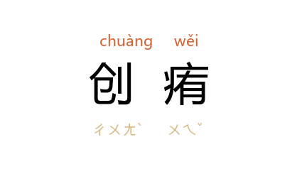 引晋 左思 《吴都赋》:“所以挂扢而为创痏,衝踤而断筋骨。”宋 张师中 《括异志·张郎中》:“熙寧 四年﹝ 张郎中 ﹞奉朝请于京师,忽疡生于手,痛不可忍。特有御医 仇鼎 者,专治创痏,呼视之。”清 蒲松龄 《聊斋志异·香玉》:“君恶作剧,使人创痏,当与君絶矣!”