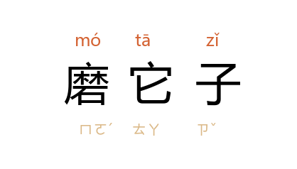 ⒈ 纠缠,拖延他人。也作「磨佗子」。