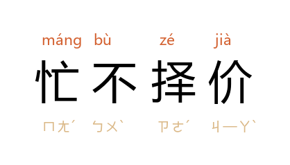 引《警世通言·金令史美婢酬秀童》:“如今忙不择价,岂不可惜。”