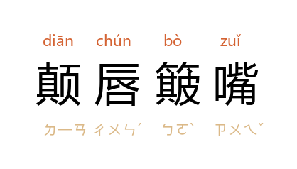 引《石点头·卷一〇·王孺人离合团鱼梦》:「有晓得的,在背后颠唇簸嘴说道:『赵瞎子做尽人,那得无此现世报。』」