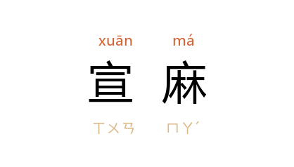 ⒈ 唐宋时任命大臣,以黄白麻纸草诏宣告,称为「宣麻」。