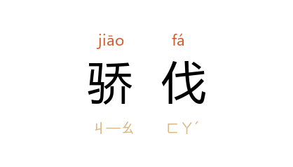 引唐 严识元 《潭州都督杨志本碑》:“骄伐以酌损,刚戾以克柔。”《资治通鉴·汉献帝建安十三年》:“昔 齐桓 一矜其功而叛者九国; 曹操 暂自骄伐而天下三分。”清 魏源 《书辽太祖事》:“上曰:‘闻吾儿自灭 梁 以后,骄伐泆乐,不恤政事,暱于倡优宵小,内作色荒,外作禽荒,以至于此。’”