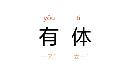 引《易·繫辞下》:“阴阳合德而刚柔有体。”孔颖达 疏:“若阴阳不合则刚柔之体无从而生。以阴阳相合,乃生万物,或刚或柔,各有其体。”南朝 梁 江淹 《效阮公诗》之五:“同情沦异物,有体入无形。”