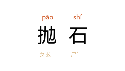 唐 李冗 《独异志》卷下:“有一卒曰:‘此可用抛石击去其首。’……﹝ 智兴 ﹞乃与抛发一石,正中其首,随石迸落。”