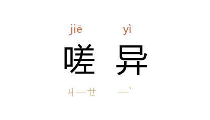 引《南史·阮孝绪传》:“邻里嗟异之。”宋 曾巩 《本朝政要策·学校》:“淳化 中,上始视学,命 孙奭 讲《説命》之篇,天子嗟异久之。”《明史·忠义传二·徐朝纲》:“﹝ 徐朝纲 ﹞御贼战死,有虎守其骸不去,蛮人嗟异。”