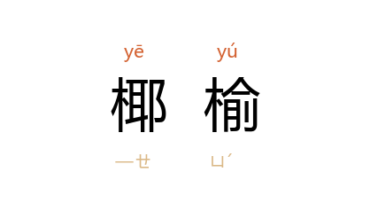引唐 司空图 《冯燕歌》:“凌波如唤游 金谷,羞彼椰榆泪满衣。”明 陶宗仪 《辍耕录·辊吝諞三卦》:“上六,或锡之高爵,天下椰榆之。”一本作“揶揄”。 清 捧花生 《画舫馀谈》:“桐舫,不知何许人,往来 秦淮河 上,手罄多貲,诸姬无不椰揄之。”