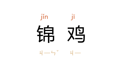 ⒈ 亦作“锦鷄”。一种鸟。形状与雉相似,雄的头上有金色的冠毛,颈橙黄色,背暗绿色,杂有紫色,尾巴很长,雌的羽毛暗褐色。多饲养来供玩赏。