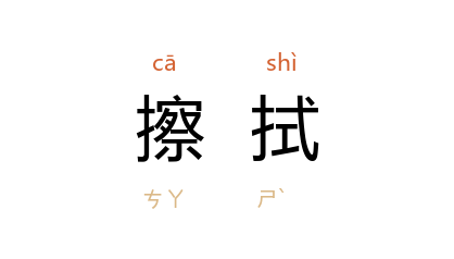 例如:「擦拭眼泪」、「擦拭油污」。