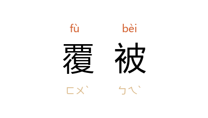⒈  掩覆遮盖。引申为庇护。《书经·禹贡》汉·孔安国·传:「水流溢,覆被之。」《春秋·隐公元年》「天王使宰咺来归」句下孔颖达·正义引服虔云:「赗,覆也;天王所以覆被臣子。」也作「冒被」、「复冒」。