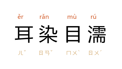 ⒈ 听惯了,看熟了,因而深受影响。也作「耳濡目染」。