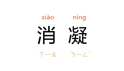 引宋 柳永 《夜半乐》词:“对此嘉景,顿觉消凝,惹成愁绪。”宋 徐介 《耒阳杜工部祠堂》诗:“消凝伤往事,斜日隐頽垣。”宋 张孝祥 《六州歌头》词:“征尘暗,霜风劲,悄边声,黯消凝。”