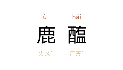 引汉 刘向 《说苑·杂言》:“今夫兰本三年,湛之以鹿醢,既成,则易以匹马。非兰本美也,愿子详其所湛。”清 潘荣陛 《帝京岁时纪胜·九皇会》:“供品以鹿醢东酒、松茶枣汤、炉焚茅草云蕊真香。”