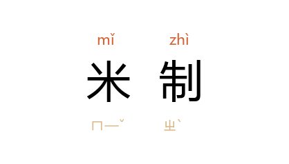 ⒈ 西元一七九五年法国所采用的度量衡制度。为长度单位,即一米(一公尺)又取一米之一百分之一,于摄氏四度时,其立方体积之纯水重为重量单位,即一克。米制皆用十进位,计算方便。自法国颁布后,我国于民国十八年采用此制。