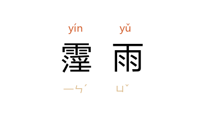 引《淮南子·修务训》:“禹 沐浴霪雨,櫛扶风。”高诱 注:“禹 劳力天下,不避风雨,以久雨为沐浴。”《旧唐书·辛替否传》:“顷自夏已来,霪雨不解。”清 唐孙华 《大雨叹》诗之二:“三月至五月,霪雨无时无。”柳青 《创业史》第一部题叙:“土围墙有的地方在秋天的霪雨中垮了,光棍主人没心思去修补它。”