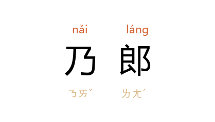引《金瓶梅词话》第六十回:“伯爵 道:‘他对我説来,我説你去的不是了。他乃郎不好,他自乱乱的,有甚么心绪和你説话。’”《儒林外史》第四三回:“汤镇臺 进来,两个乃郎请安叩见了。”《隋唐演义》第五四回:“他的令堂乃郎,孤多膳养在此。”