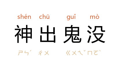 ⒈ 语本形容行动快速,变化莫测。也作「神出鬼入」。