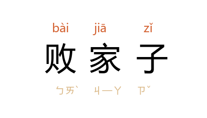 例如:「别成天无所事事,只会挥霍家产,当个败家子。」