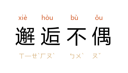 引汉 王充 《论衡·定贤》:“荆軻 入 秦 之计,本欲劫 秦王 生致于 燕,邂逅不偶,为 秦 所擒。”宋 叶适 《陈秀伯墓志铭》:“夫亲遇明主,千説悟意,九筵之室可陛而登,屡省之歌可颺而賡也,尚邂逅不偶;况一夫之取捨,何足动心乎。”