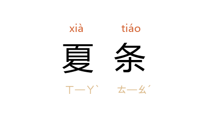 引晋 陆机 《从军行》:“夏条集鲜藻,寒冰结衝波。”南朝 梁 萧统 《答湘东王求文集诗苑书》:“夏条可结,睠於邑而属词;冬雪千里,覩纷霏而兴咏。”唐 沉佺期 《夏日梁王席送张岐州》诗:“芃芃秋麦盛,苒苒夏条垂。”唐 韦应物 《夏花明》诗:“夏条緑已密,朱蕚缀月鲜。”