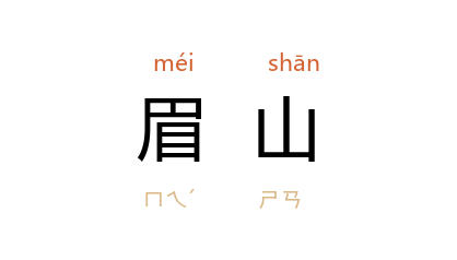 ⒉ 县名。在四川省成都市西南,濒岷江西岸,旧为眉州,宋代文学大家苏洵父子即为此地人。农产有稻、小麦、油菜籽等;矿产则有硝、石膏。