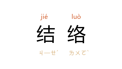 引唐 李肇 《唐国史补》卷上:“命僮登车,断其结络,悉推瓮于崖下。”宋 孟元老 《东京梦华录·驾行仪卫》:“御龙直皆真珠结络短顶头巾。”