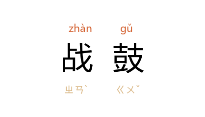 ⒈ 战争时所击的鼓。作为鼓舞士气及发动攻击的信号。