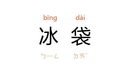 ⒈ 医疗用具,可以装冰块的橡胶袋。用以敷在病人头、胸等部位,使局部的温度降低。