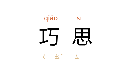 引《南史·卷三一·张裕传》:「永涉猎书史,能为文章,善隶书,骑射杂艺,触类兼善。又有巧思,益为文帝所知。」《三国演义·第七八回》:「洛阳良工有苏越者,最有巧思。」