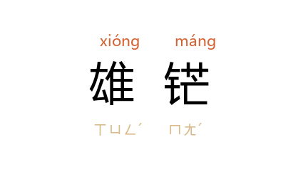 引唐 刘禹锡 《砥石赋》:“我有利金兮以利为佩,遭土卑而慝作兮雄鋩为之潜晦。”借指宝剑。 宋 梅尧臣 《送寿州司理张元舆》诗:“霜寒月冷古时狱,下有苔蠹之雄鋩。”