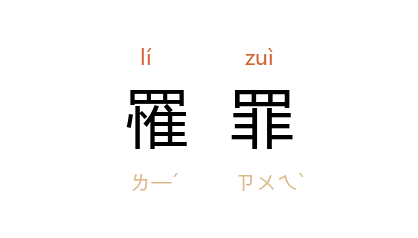 引汉 贾谊 《新书·修政语上》:“痛万姓之罹罪,忧众生之不遂。”南朝 宋 刘义庆 《世说新语·言语》:“刘公干 以失敬罹罪。”清 蒲松龄 《聊斋志异·甄后》:“当日以妾罹罪,心实不忍。”杨沫 《东方欲晓》十九:“生逢乱世,庶民罹罪,我也只好苟且偷生吧!”