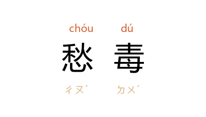 引《后汉书·杨秉传》:“而今枝叶宾客布列职署,或年少庸人,典据守宰,上下忿患,四方愁毒。”《新唐书·南蛮传中·南诏下》:“﹝ 蔡京 ﹞褊忮贪克,峻条令,为炮熏刳斮法,下愁毒,为军中所逐,走 藤州。”