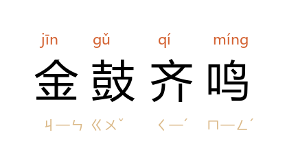 金鼓齐鸣[ jīn gǔ qí míng ]