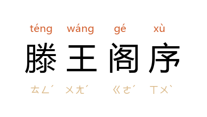⒈ 文章名。为唐王勃参加洪州都督阎公于滕王阁上盛宴时所作。其中「落霞与孤鹜齐飞,秋水共长天一色」为千古名句。