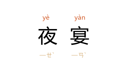 引《新唐书·五行志一》:“光宅 初,宗室 岐州 刺史 崇真 之子 横 杭 等夜宴,忽有气如血腥。”唐 方干 《陪李郎中夜宴》诗:“閒世星郎夜宴时,丁丁寒漏滴声稀。”《红楼梦》第五三回回目:“寧国府 除夕祭宗祠, 荣国府 元宵开夜宴。”