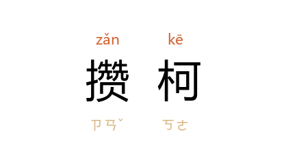引晋 左思 《吴都赋》:“攅柯挐茎,重葩殗叶。”南朝 梁 刘孝绰 《林下映月》诗:“攒柯半玉蟾,裛叶彰金兔。”唐 常沂 《禁中青松》诗:“攒柯霑圣泽,疏盖引皇风。”