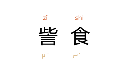 引《管子·形势》:“小谨者不大立,訾食者不肥体。”尹知章 注:“訾,恶也。恶食之人,忧嫌致瘠,故不能肥体。”郭沫若 等集校引 洪颐煊 曰:“‘訾’当作‘飺’。 《形势解》‘飺食者多所恶也,人飺食则不肥’,字皆作‘飺’。 《玉篇》‘飺,嫌食貌’,义本此。”