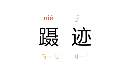 引南朝 宋 谢灵运 《撰征赋》:“缓轡待机,追奔躡迹。”清 蒲松龄 《聊斋志异·促织》:“躡蹟披求,见有虫伏棘根;遽扑之,入石穴中。”梁启超 《罗兰夫人传》:“忽復有两警吏躡跡而来,出示一公文,则再逮捕之命令也。”