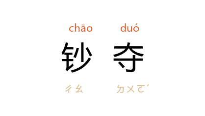 引《三国志·魏志·公孙瓒传》“瓚 诬 虞 欲称尊号,胁 训 斩 虞” 裴松之 注引 晋 孙盛 《魏氏春秋》:“虞 所赏赐, 瓚 輒钞夺。”《新五代史·杂传·卢文进》:“自 瓦桥关 至 幽州,严兵斥候,常苦钞夺。”宋 秦观 《边防上》:“馈运则有钞夺之虞,是以苦其难守也。”