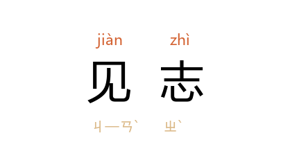 引南朝 梁 刘勰 《文心雕龙·诸子》:“诸子者,入道见志之书。”《新五代史·晋臣传·桑维翰》:“初举进士,主司恶其姓,以‘桑’、‘丧’同音。人有劝其不必举进士,可以从佗求仕者, 维翰 慨然,乃著《日出扶桑赋》以见志。”