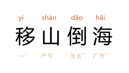⒈ 移动山岳,倾翻大海。原形容神仙法术的神奇。亦形容人类征服自然、改造自然的巨大力量和伟大气魄。