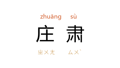 引明 李东阳 《外姑宋夫人墓志铭》:“夫人生而庄肃,通书能琴,精女事。”《四游记·三藏历尽诸难已满》:“国王看 三藏 仪容庄肃,就令阴阳官站班,叫 三藏 与公主同拜天地。”冰心 《到青龙桥去》:“我看见他们,永远起一种庄肃的思想。”