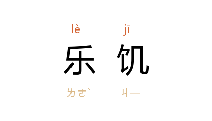 ⒉ 疗饥;充饥。乐,通“疗”。《诗·陈风·衡门》:“衡门之下,可以栖迟。泌之洋洋,可以乐饥。”高亨注:“乐,借为疗。《列女传·贤明》引作疗。”宋苏轼《十二琴铭·玉磬》:“其清越以长者,玉也;听万物之秋者,磬也。宝如是,中藜藿,不再食。以是乐饥,不以告籴。”清颜光敏《颜氏家藏尺牍·孙侍读一致》:“纵放意于山水,山水果可乐饥,即肆力于诗文。”一说“乐”音lè,“乐饥”谓乐道而忘饥。参阅《诗·陈风·衡门》毛传。