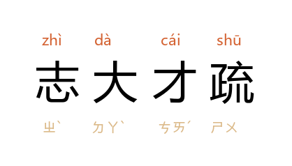 ⒈ 语本指志向远大,而才能疏阔不实在。宋·苏轼〈扬州谢到任表〉:「志大才疏,信天命而自遂。」也作「志大才短」、「志广才疏」、「才疏志大」、「材疏志大」。