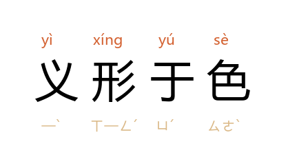 ⒈ 语出指心怀正义愤慨而流露在脸上。也作「义形于色」。